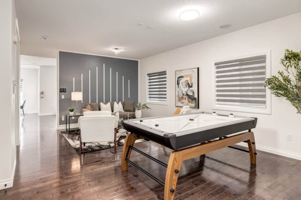 Welcome to the ultimate group getaway in Evanston, NW Calgary! As a local, I promise, you won’t find a home this spacious, stylish, and perfect for big crews. With 4 large bedrooms, 9 comfy beds, A/C, fast Wi-Fi, a sizzling BBQ setup, and tons of hangout space, it’s built for connection and comfort. Minutes from shops, parks, and major routes, this is where fun meets convenience. Whether it’s family, friends, work colleagues or retreats - this is the place. Book now before it’s gone! Whether you're traveling with a large family, a group of friends, or just need room to spread out, this home offers plenty of space and sleeping options, with a total of 9 beds to accommodate everyone with ease. Step into a fully stocked kitchen that’s ready for everything from quick breakfasts to hearty dinners. Gather around in not one, but two spacious living rooms, where you can unwind, catch up, or enjoy a movie night on one of the three smart TVs complete with Roku Live Channels, Disney Plus, and Prime Video. The washer and dryer make longer stays or family travel that much easier. Stay connected with fast, reliable internet, and enjoy the convenience of driveway and street parking. When it’s time to rest, you'll find a flexible sleeping setup to suit every kind of guest: 1 luxurious King-size bed 1 cozy Queen-size bed 1 Single-over-Double bunk bed (2 separate beds) 2 Single-over-Single bunk beds (offering 4 individual twin beds) And a comfy sofa bed for added flexibility Whether you're in town for an adventure, a celebration, or simply a relaxing escape, this home is set up to make your stay seamless and enjoyable. Book now and experience comfort, space, and a touch of home! Please note that the developed walk out basement is NOT included in the rental. It is occupied by a working professional and his 2 little kids, and there is no shared access between the basement and the main unit. We kindly ask that you be mindful of noise levels!!! In the spirit of mutual respect, we appreciate your consideration in maintaining a peaceful environment.